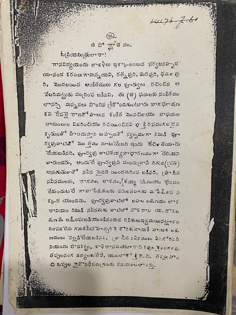 His jAvaLis were probably never printed as a book. These were obtained by visiting the family of the poet in “durgADa gETu” village in Andhra Pradesh, and copying from the hand-written notes of the poet.