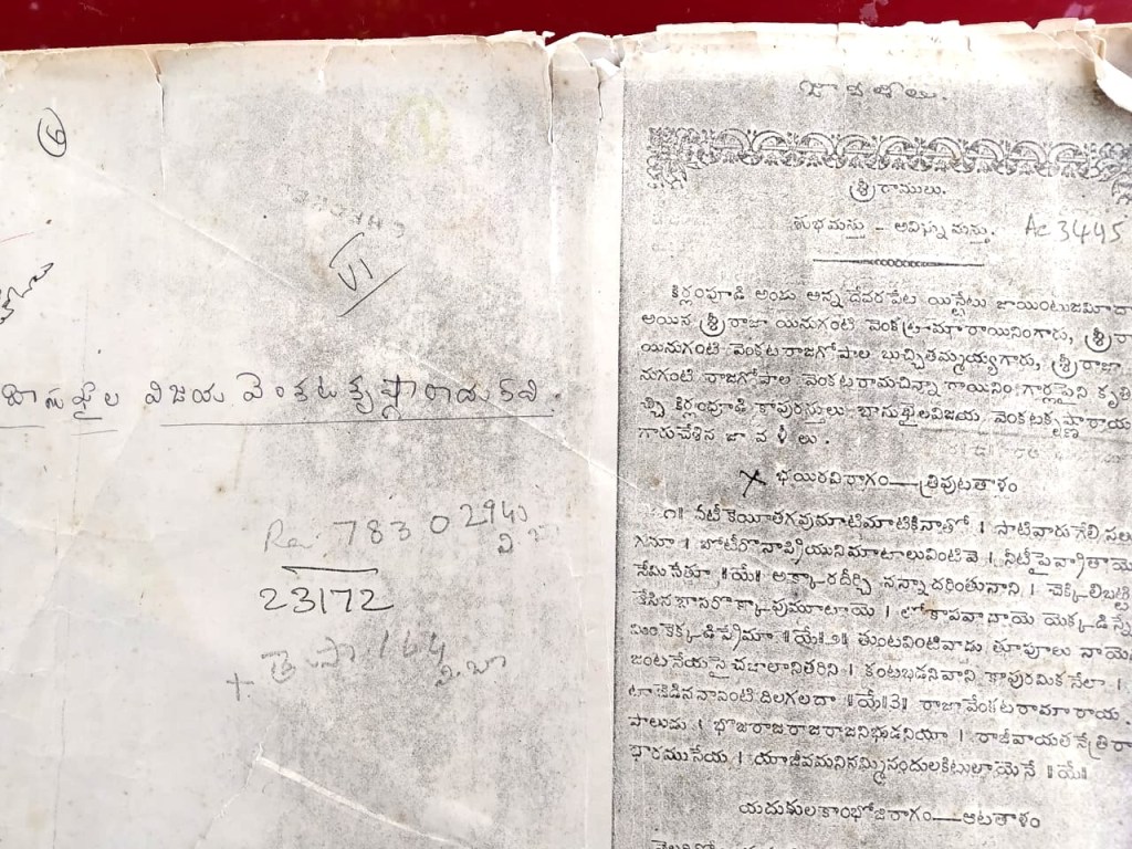 | గాన విద్యా వినోద రసిక జనానంద కరంబుగ నుండునటుల వేలూరు గ్రామ నివాసియును, ఫస్టు గ్రేడ్ ప్లీడర్ గారునునగు | gaana vidyA vinOda rasika janAnanda karambuga nunDunaTula vElUru grAma nivAsiyunu, fasTu grED plIDar gArununagu |