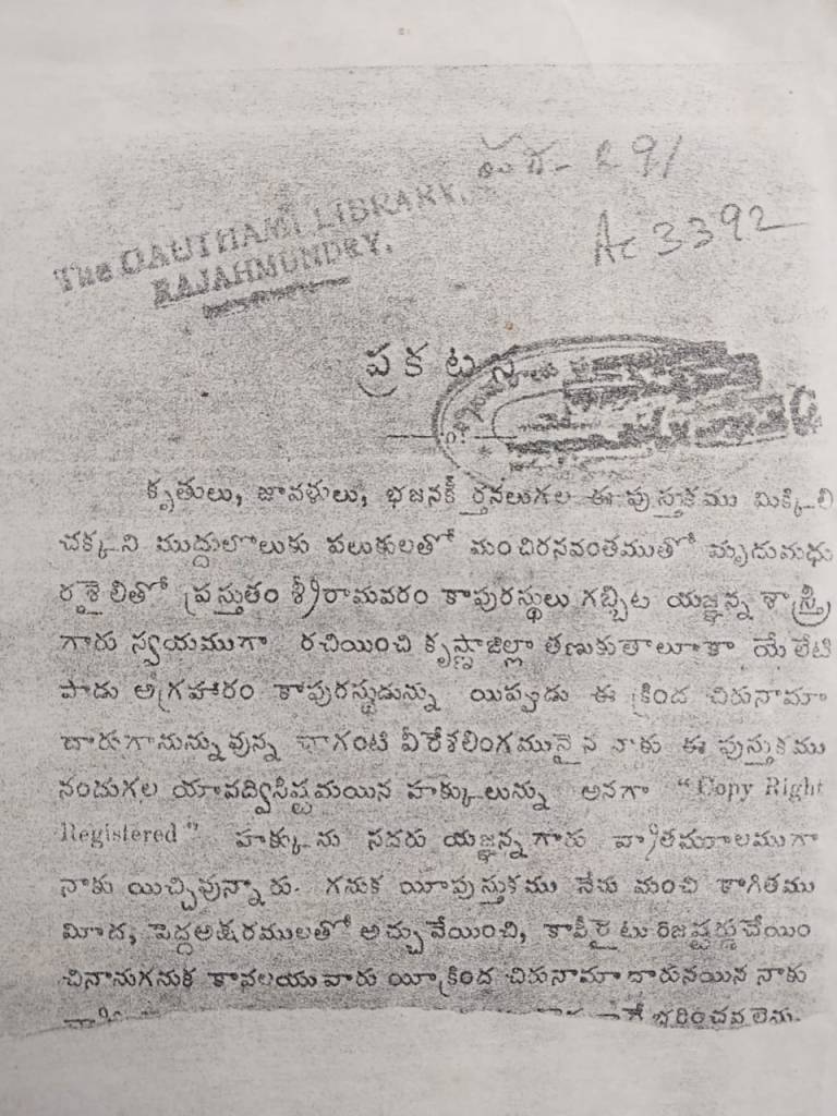 Book 6: “gabbiTa yajnanna SAstrigAri kRtulu-jAvaLulu-bhajana kIrtanalu”