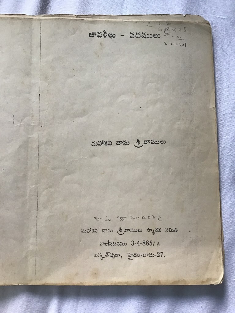 Book 9: “jAvaLIlu – padamulu” by dAsu SrIrAmulu, published in 1991