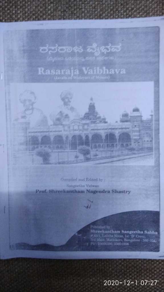 Found this book at http://musicresearchlibrary.net/omeka/items/show/2955 a few months ago. Book has 5 parts (sections) – each section has jAvaLis in a north-Indian language (yet to identify, need to read 10-15 to get better idea), and a jAvaLi in Tamil language with the same number! We’re still trying to see if the meaning is the same!