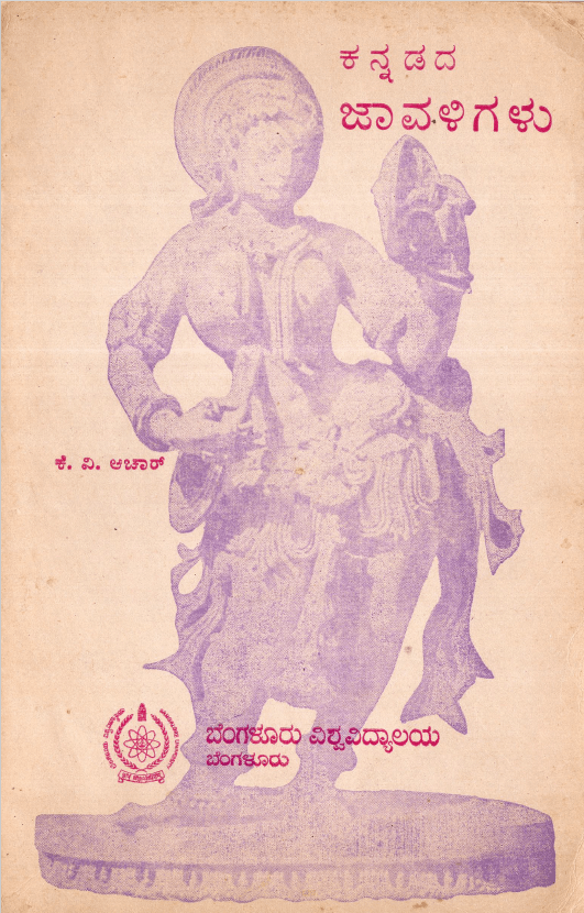 Unfortunately, the used book my mother bought doesnt have a cover page. And, I made the mistake of marking all jAvaLi lyrics from this book (from #861 until about 1100) to be from the book “ankitarahita jAvaDigaLu”. Realized only recently that the actual book title is “kannaDada jAvaLigaLu”. “ankitarahita jAvaDigaLu” is a section name.