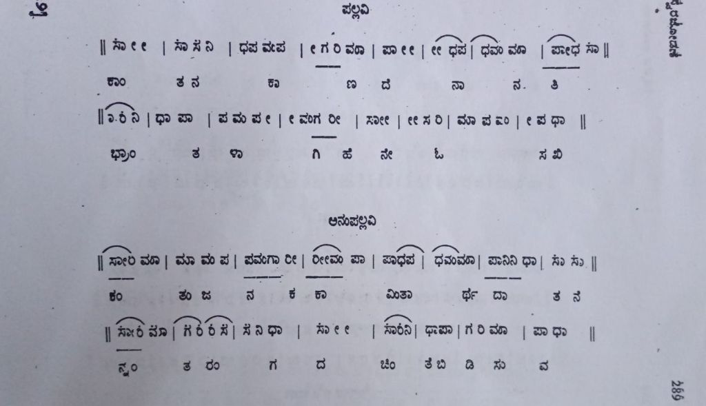 | పల్లవి pallavi | కాంతన కాణదె నానతి భ్రాంతళాగిహెనె ఓ సఖి | kAntana kANade nAnati bhrAntaLAgihene O sakhi |