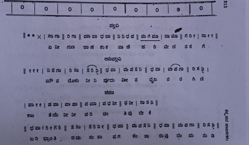 | చరణం charaNam 1 | నంబిసి యన్న నరకారి బాలన అంబిగె గురి మాడి అతి సౌఖ్య పడువ సంభ్రమదొళు జారి నానిహెనే హా | nambisi yanna narakAri bAlana ambige guri mADi ati saukhya paDuva sambhramadoLu jAri nAnihenE hA |